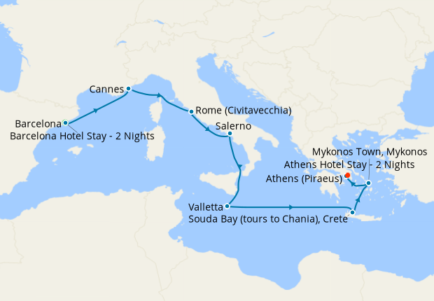 Western Med with Barcelona and Athens Stays, 4 June 2027 (14 nights)