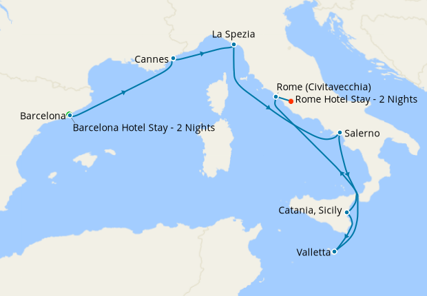 Western Med with Barcelona and Rome Stays, 6 August 2027 (13 nights)
