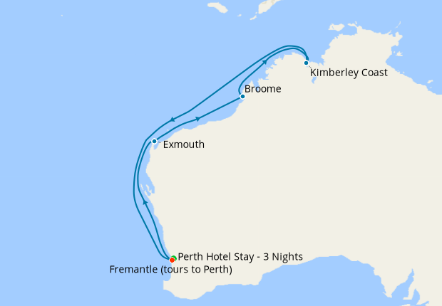 Day 5-14Cruise from Fremantle (tours to Perth) and back