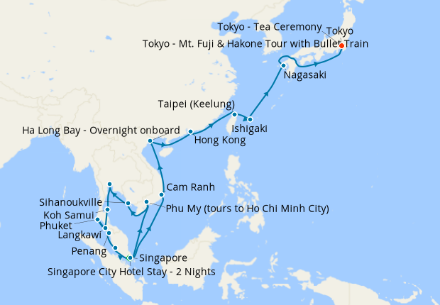 Day 9-10Laem Chabang (tours to Bangkok) - Overnight onboardArrives at: 8 am, Departs at: 4 pm