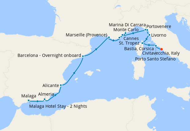 Mediterranean Odyssey: Spain, Italy and the French Riviera from Malaga - Fly Cruise, 19 April 2027 (16 nights)