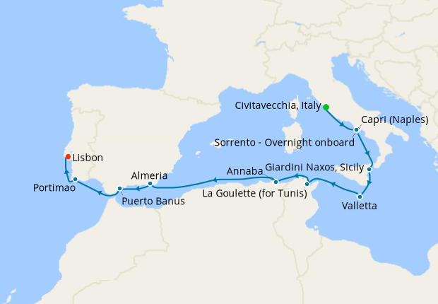 Today's Civitavecchia was born as an Etruscan village along the Tyrrhenian coast, but it is believed that the territory has been inhabited since the Neolithic era. The first documents mentioning the city date back to the year 107 AD; the same as the construction of the port which ended three years later. During a stop in Civitavecchia you can visit the Taurine Baths, the Michelangelo Fort, and the Cathedral.
