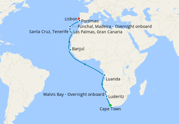 South Africa to Portugal from Cape Town to Lisbon, 4 May 2026 (23 nights)