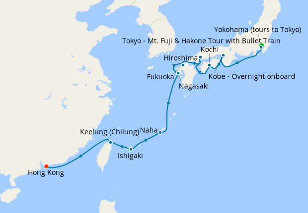 Day 5-18Cruise from Yokohama (tours to Tokyo) to Hong Kong