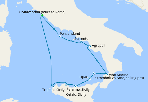 Today's Civitavecchia was born as an Etruscan village along the Tyrrhenian coast, but it is believed that the territory has been inhabited since the Neolithic era. The first documents mentioning the city date back to the year 107 AD; the same as the construction of the port which ended three years later. During a stop in Civitavecchia you can visit the Taurine Baths, the Michelangelo Fort, and the Cathedral.